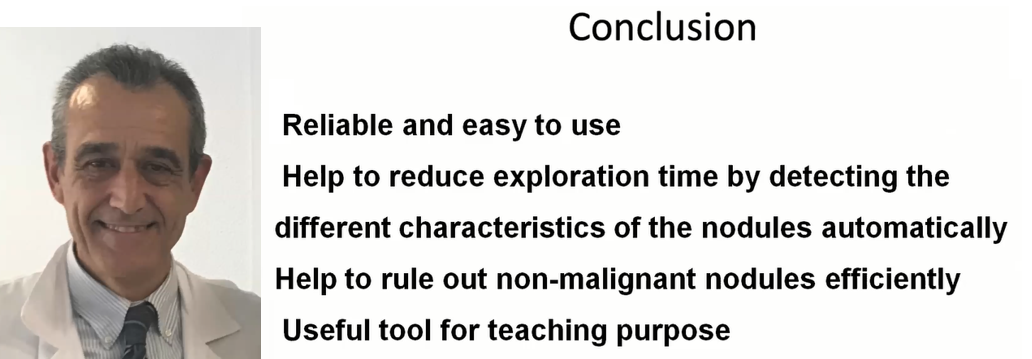 西班牙巴塞隆纳自治大学医学教授Jordi L. Reverter也与会分享,使用安克侦甲状腺超声图像处理CAD系统,可以有助于医师提升诊断甲状腺结节的准确性,并指出CAD在教育方面也提供很大的协助,有助缩短医学生、年轻医师的学习曲线(learning curve)。